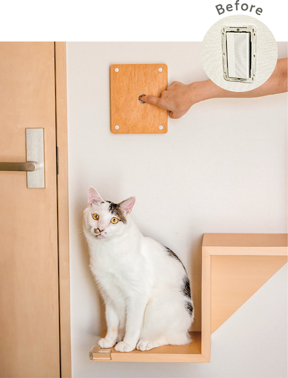 猫の行動を理解して設計できる複数の専門家に相談し、キッチンの侵入防止柵を作ってもらったり、スイッチやコンセントのカバー製作を依頼するなど工夫を重ねた寺川さん。
