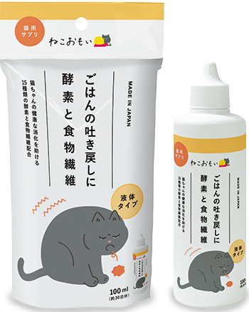 無味無臭の液体タイプのサプリメントで、食物繊維と体内で産出された15種類の酵素が適切な排泄をサポートしてくれます。いつものごはんに「ねこおもい」を習慣化して、愛猫と健やかな毎日を過ごしましょう!