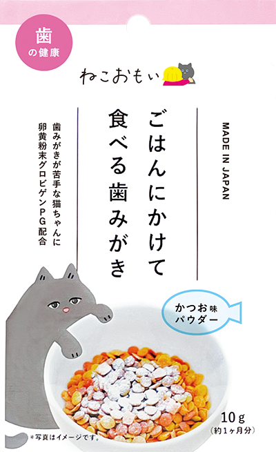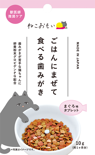 「グロビゲンPG」と「フェカリス菌」でお口とお腹の健康をサポート。フードにかけるパウダータイプとまぜて与えるタブレットタイプ