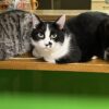 早速、口元の個性的な黒ヒゲ模様がチャームポイントのハチワレ、ぱっちが挨拶に来てくれました。ちょっぴりビビリだけど甘えっこで、お客さんのお膝の上が大好きな膝乗り王子です。ブランケットの上で、癒しパワー全開! 乗られたが最後、動けません。