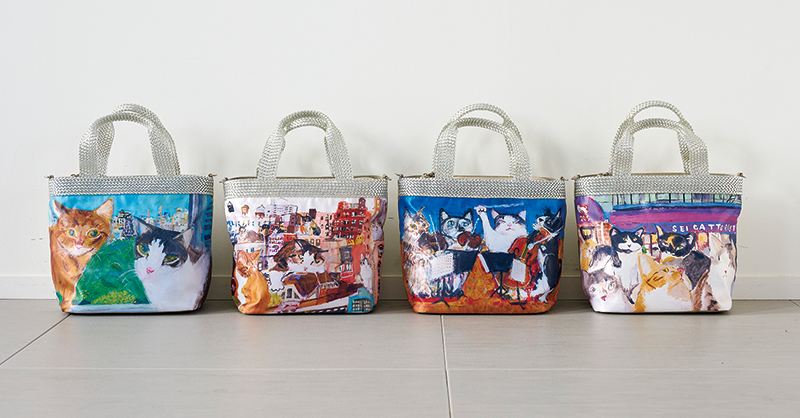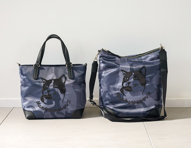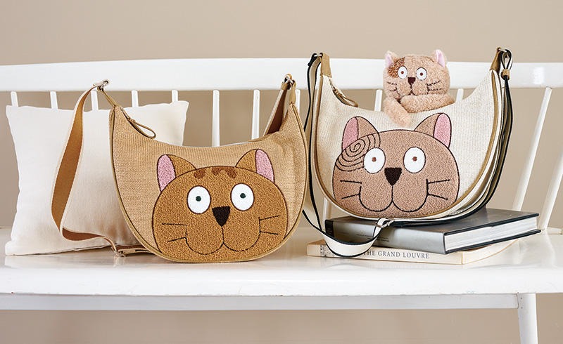 スパンコールで猫の顔を表現した、大人のための新作バッグシリーズ。