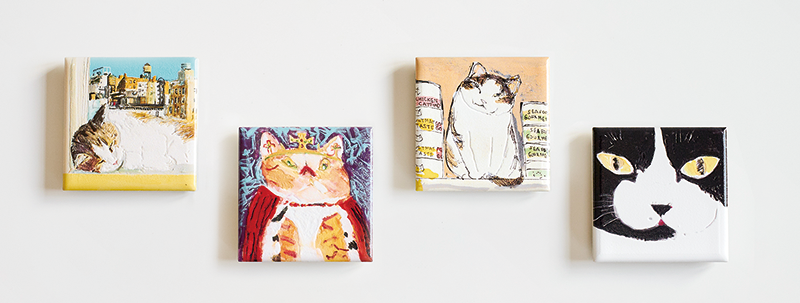左から:アートマグネット「ぐっすりフェデリコ」、「暴君シゲオ」、「グルメ猫」、「マーベリック・クマ」