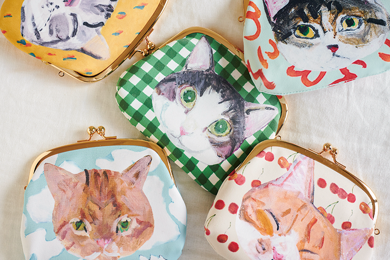 カラフルな背景とクローズアップされた猫たちがかわいいがま口シリーズ。