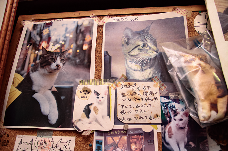 現役の看板猫はこのふたりですが、8年間お店を見守りつづけた初代看板猫、キジトラのこたろうくんも忘れがたい存在です。気は強かったけれど愛嬌たっぷりで、いつも常連さんたちを笑顔にしていたといいます。