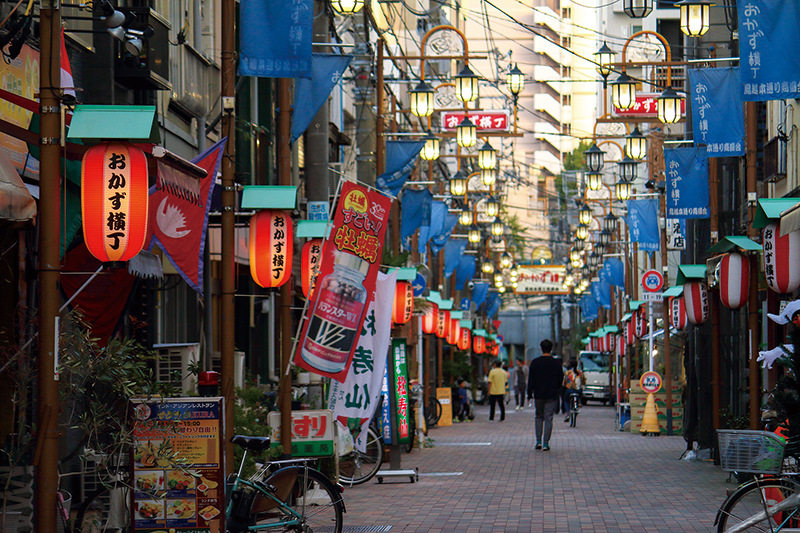町工場が多かったこの地 域では昭和の時代から夫婦共働きの家庭も多く、夕飯の支度をする間もない人々の食卓を支えたのがこの 「おかず横丁」。東京下町の雰囲気が残る通りは、夕暮れ時の散歩がおすすめだ