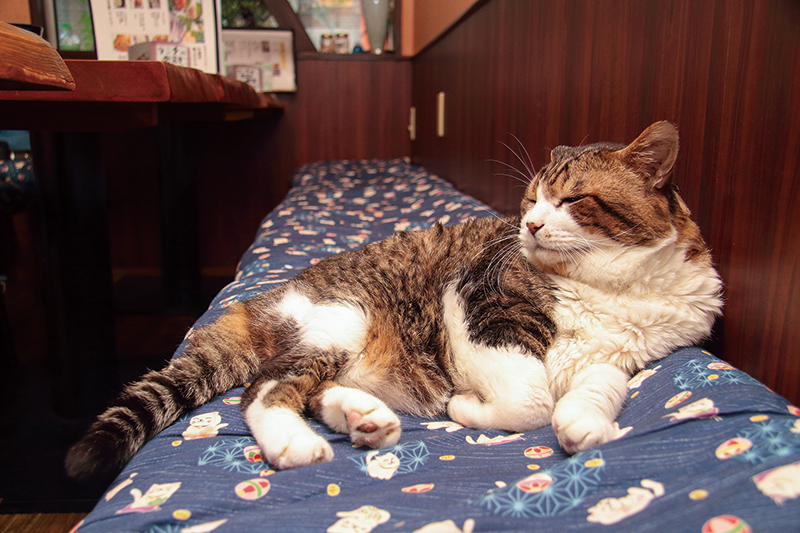 お店にはもうひとり、三毛猫のおせんちゃん(15歳♀)がいます。まるで日本画から抜け出て来たような、それは上品な美猫さんです。